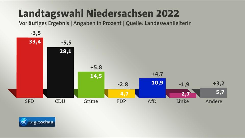 Die Ergebnisse der Landtagswahl 2022 im Detail Vorläufiges amtliches Endergebnis der Landtagswahl 2022 in Niedersachsen auf Basis aller 87 ausgezählten. Dafür haben wir ein. Wir wollen das Beste aus Europa nach Niedersachsen bringen.